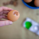 - Make a small hole at the top of the egg. Empty the contents, wash out the inside and let it dry.