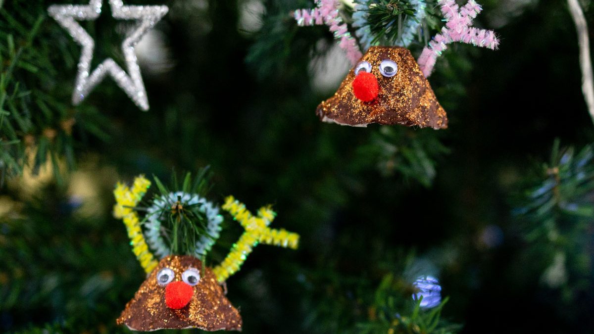 - From the chenille sticks, cut two 3 cm pieces to make the reindeer antlers.