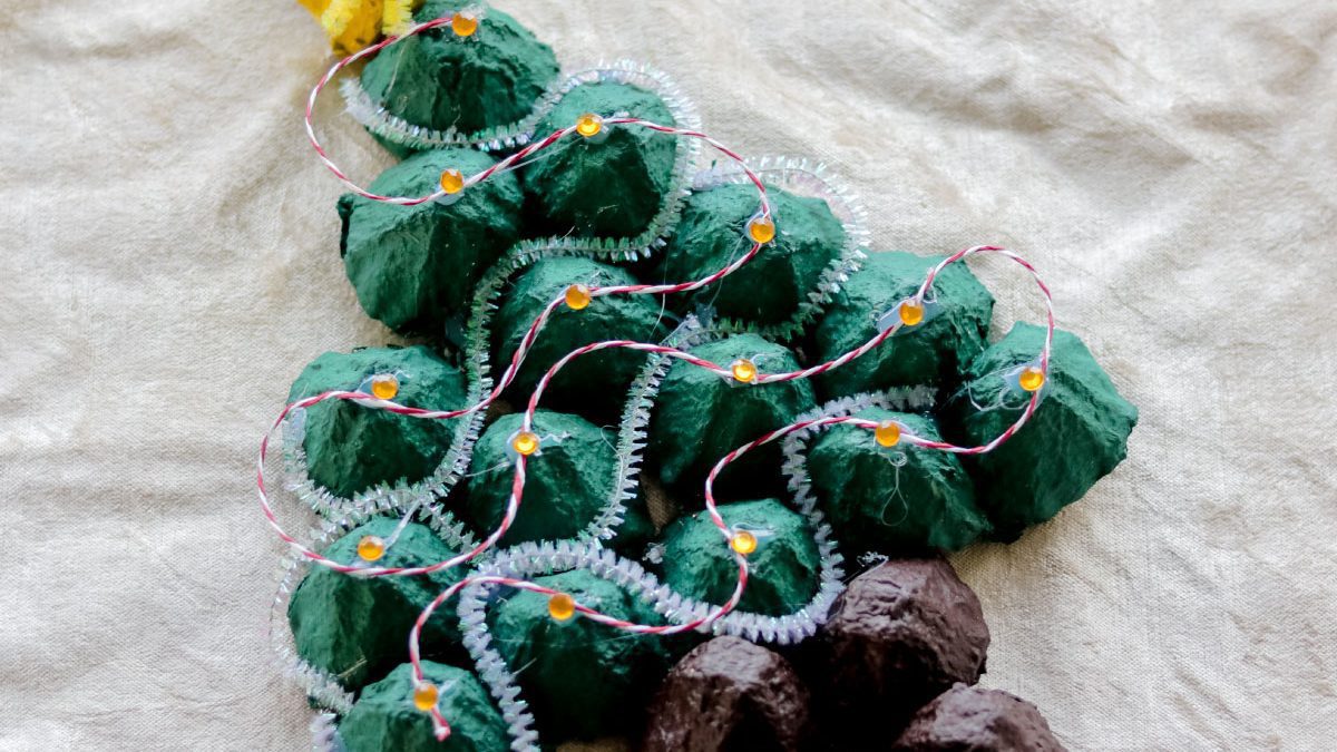 - Use the chenille sticks as tinsel and weave it through the various sections and shapes of the tree.